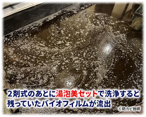 しかしプロ用の配管洗浄剤湯泡美(ゆわみ)セットを使用したところ、大量の汚れと共に有害菌は不検出となりました。