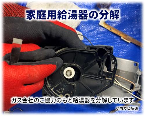 当研究所が監修する株式会社リベルタとの共同試験において、25年間使用された家庭用ガス給湯器を対象に、「ヘドロトルネード」を用いた1週間・30回連続洗浄の耐久テストを実施しました。その結果、ガス給湯器の構造・配管・熱交換器に異常や損傷は確認されませんでした。風呂釜洗浄剤を選ぶ際は、このように実機による安全性試験を実施している製品をおすすめします。