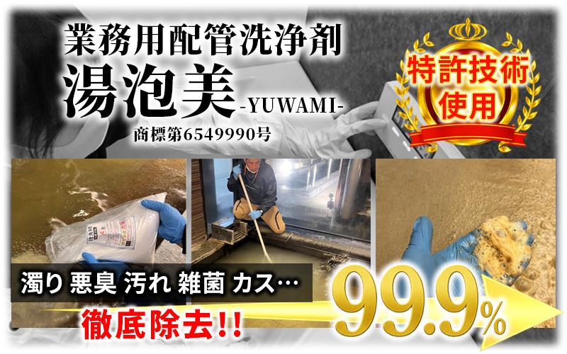 湯泡美(ゆわみ)は、特許第2060821号に基づいて作られており、公的衛生機関や学会において「高い生物膜除去効果が確認された」と評価されています。そのため現在でも数々の温泉施設でレジオネラ属菌を対策するために使用されています。