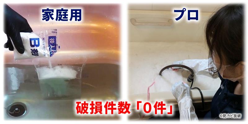 2025年9月時点、当研究所が監修する企業の累計出荷は、ガス給湯器・エコキュート対応の風呂釜洗浄剤で10万本超(当研究所調べ)に達しています。 また、当研究所の会員アンケートによる「家庭用給湯器(ガス給湯器・エコキュート)の破損件数に関する調査※」では、施工報告ベースで破損は確認されていません。