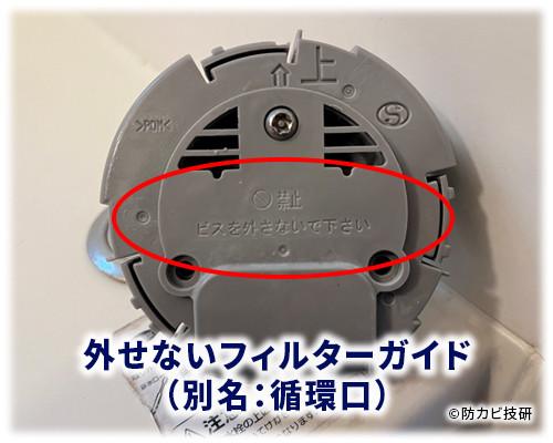 風呂釜のフィルターを取り外すと、その奥に「フィルターガイド」と呼ばれる部品が見えます。このフィルターガイドはお湯の流れを制御する重要なパーツで、安易に外してしまうと正確に戻せなくなることがあります。